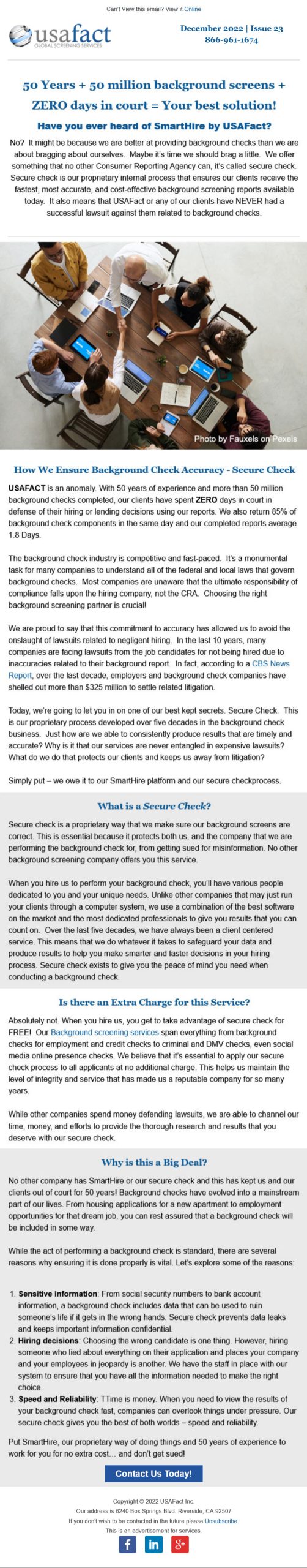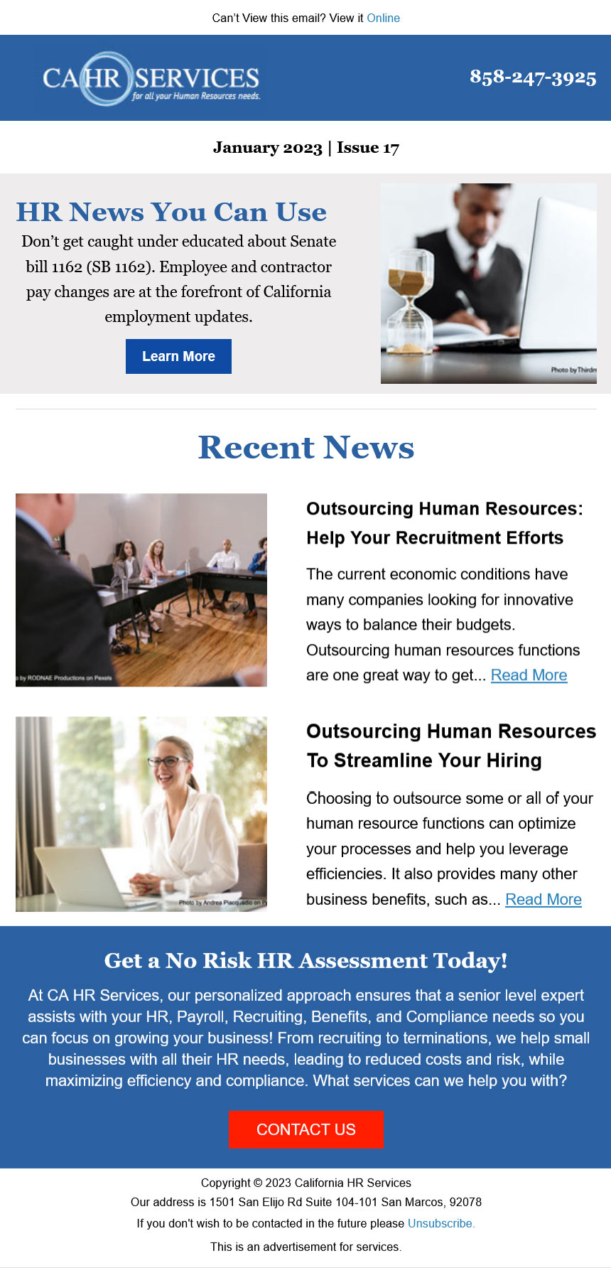 Newsletters Design GalleryProfessional newsletter designs for email marketing. CAHR Services Jan 2023 CAHR Services Jan 2023 7th Level Jan 2023 7th Level Jan 2023 Wagner Match Dec 2022 Wagner Match Dec 2022 USA Fact Dec 2022 USA Fact Dec 2022 Proactive Plumbing Dec 2022 Proactive Plumbing Dec 2022 Pencom Capital Dec 2022 Pencom Capital Dec 2022 CAHR Services Dec 2022 CAHR Services Dec 2022 Buy Simple Solutions Dec 2022 Buy Simple Solutions Dec 2022 USA Fact Nov 2022 USA Fact Nov 2022 Buy Simple Solutions Aug 2022 Buy Simple Solutions Aug 2022 CAHR May 2022 CAHR May 2022 Sagacent Jan 2022 Sagacent Jan 2022 Load More Loading More… You’ve reached the end of the list