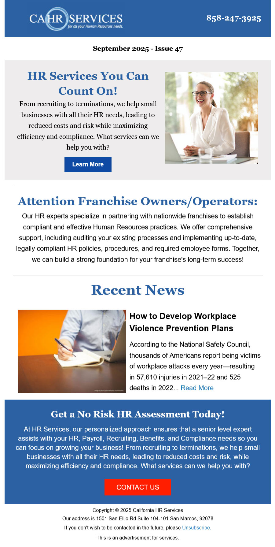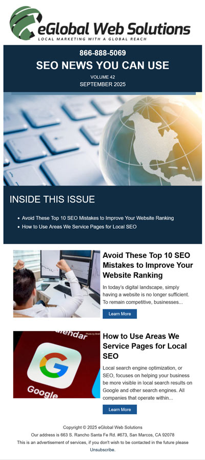 Newsletters Design GalleryProfessional newsletter designs for email marketing. Proactive Plumbing Sep 2025 Proactive Plumbing Sep 2025 Socal Green Sep 2025 Socal Green Sep 2025 Wagner Match Sep 2025 Wagner Match Sep 2025 CA HR Services Sep 2025 CA HR Services Sep 2025 September 2025 Newsletter September 2025 Newsletter eGlobal Web Solutions® Sep 2025 eGlobal Web Solutions® Sep 2025 OneStopEmails Sep 2025 OneStopEmails Sep 2025 Pen Com Capital Sep 2025 Pen Com Capital Sep 2025 USA Fact Sep 2025 USA Fact Sep 2025 Buchmann Bakery Sep 2025 Buchmann Bakery Sep 2025 United Termite Control Sep 2025 United Termite Control Sep 2025 Load More Loading More… You’ve reached the end of the list